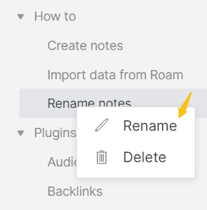 If you want to rename a note that you're not editing, go to file explorer, right-click on the note or folder and choose "Rename":