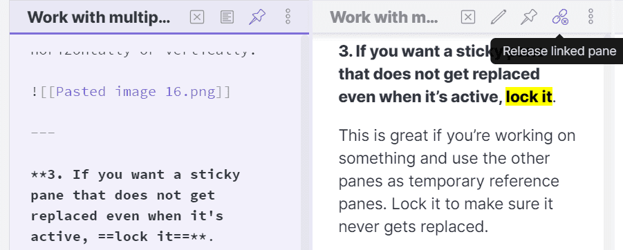 3. If you want a sticky pane that does not get replaced even when it's active, ==pin it==.